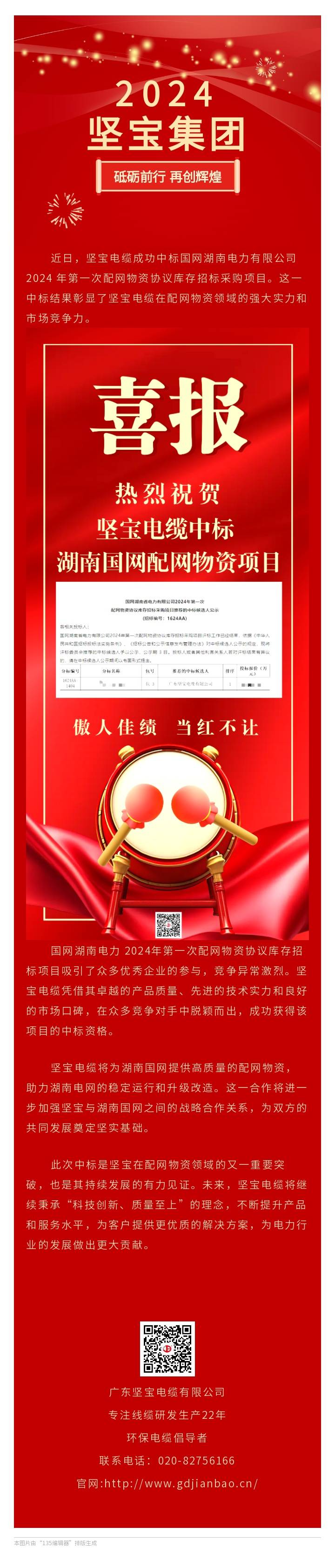 【重磅喜報】熱烈祝賀堅寶中標湖南國網(wǎng)配網(wǎng)物資項目