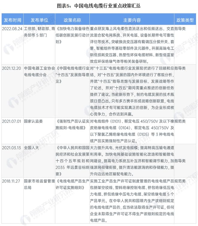 近年來(lái),政府各部門(mén)發(fā)布了一系列的政策法規以推動(dòng)國內電線(xiàn)電纜行業(yè)健康、快速地發(fā)展?!吨腥A人民共和國國民經(jīng)濟和社會(huì )發(fā)展第十四個(gè)五年規劃和2035年遠景目標綱要》提出,提高特高壓輸電通道利用率,加快電網(wǎng)基礎設施智能化改造和智能微電網(wǎng)建設,提升向邊遠地區輸配電能力。