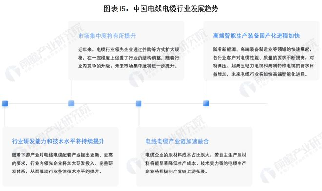 “十四五”期間,國家將大力提升風(fēng)電、光伏發(fā)電規模;提高特高壓輸電通道利用率,加快電網(wǎng)基礎設施智能化改造和智能微電網(wǎng)建設,也因此對電線(xiàn)電纜的質(zhì)量提出了新的要求。在此背景下,行業(yè)內領(lǐng)先企業(yè)將加大研發(fā)投入、完善研發(fā)體系,行業(yè)研發(fā)能力和技術(shù)水平將持續提升。同時(shí),隨著(zhù)新能源、高端裝備制造業(yè)等領(lǐng)域的快速崛起,對特高壓、超高壓電力電纜和高端特種電纜的需求日益增加,未來(lái)電纜行業(yè)將加快高端智能化進(jìn)程。
